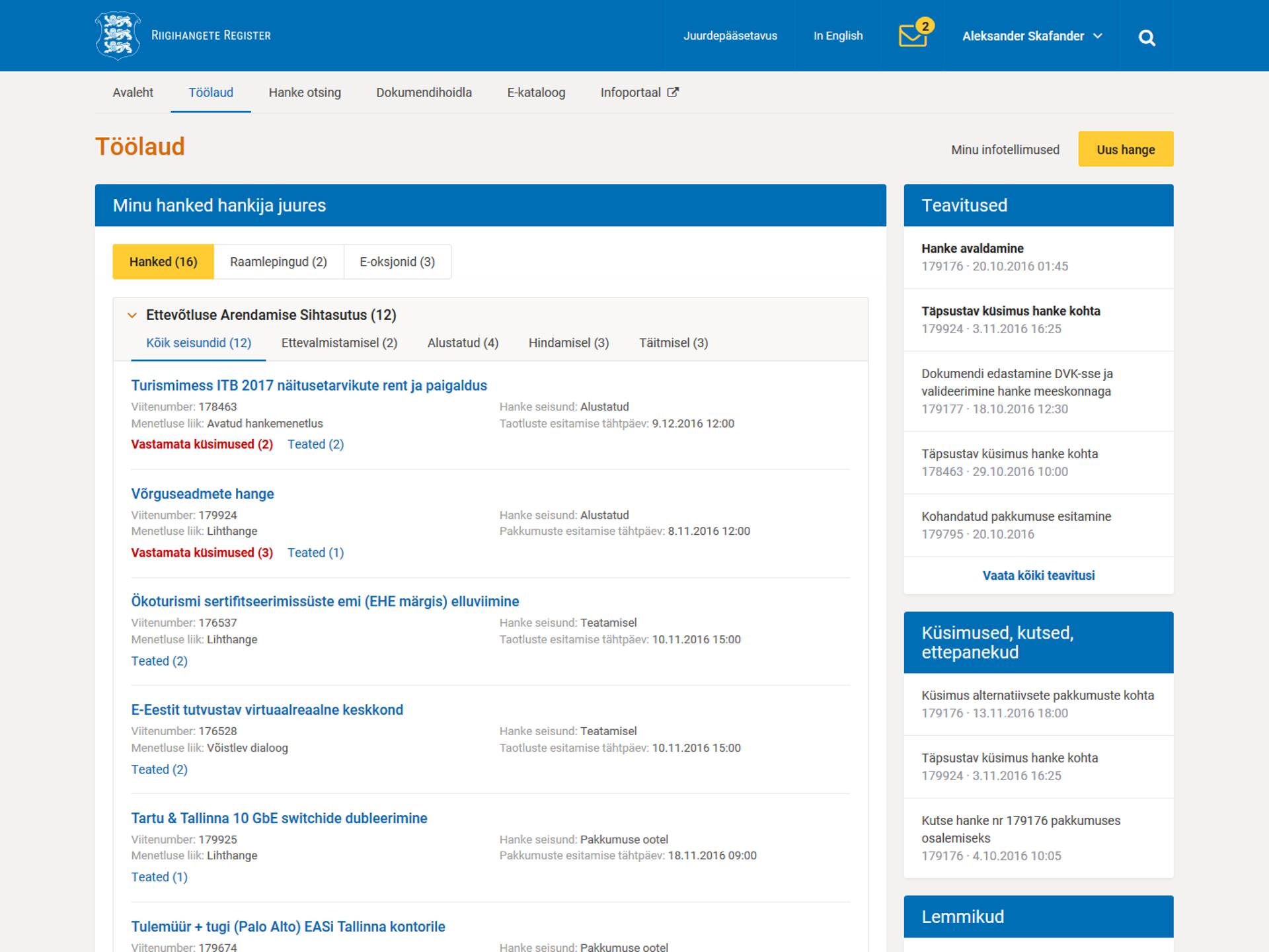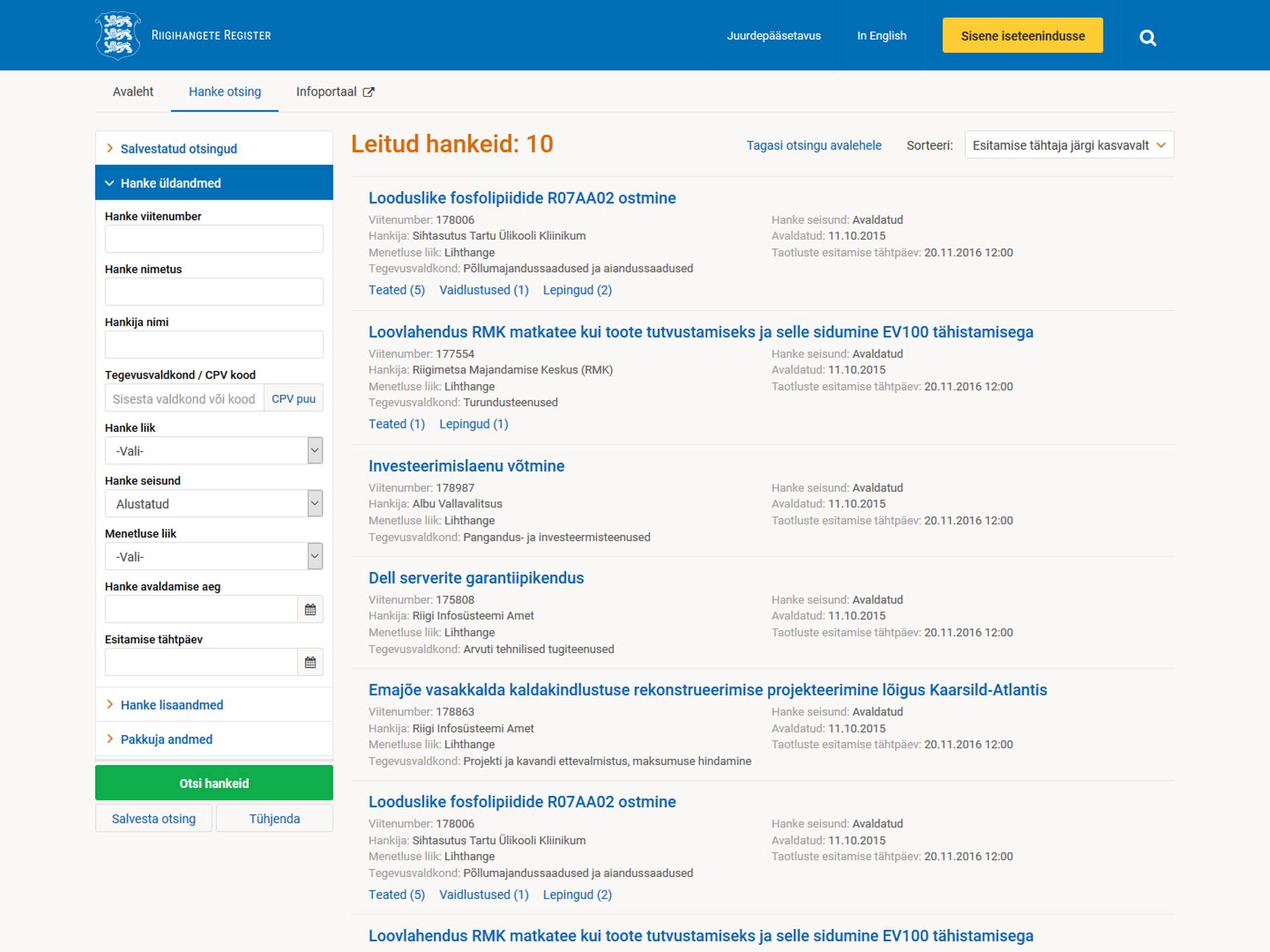 Uue riigihangete registri arendusprojektis on valminud esimene osa – kasutajate vajadusi arvestav kujundus, otsingusüsteem ja töölauavaade. Rahandusministeeriumi, Rahandusministeeriumi Infotehnoloogiakeskuse ning tarkvara ja ärikonsultatsioonide ettevõtte Nortal loodav register jõuab kasutajateni 2018. aastal.